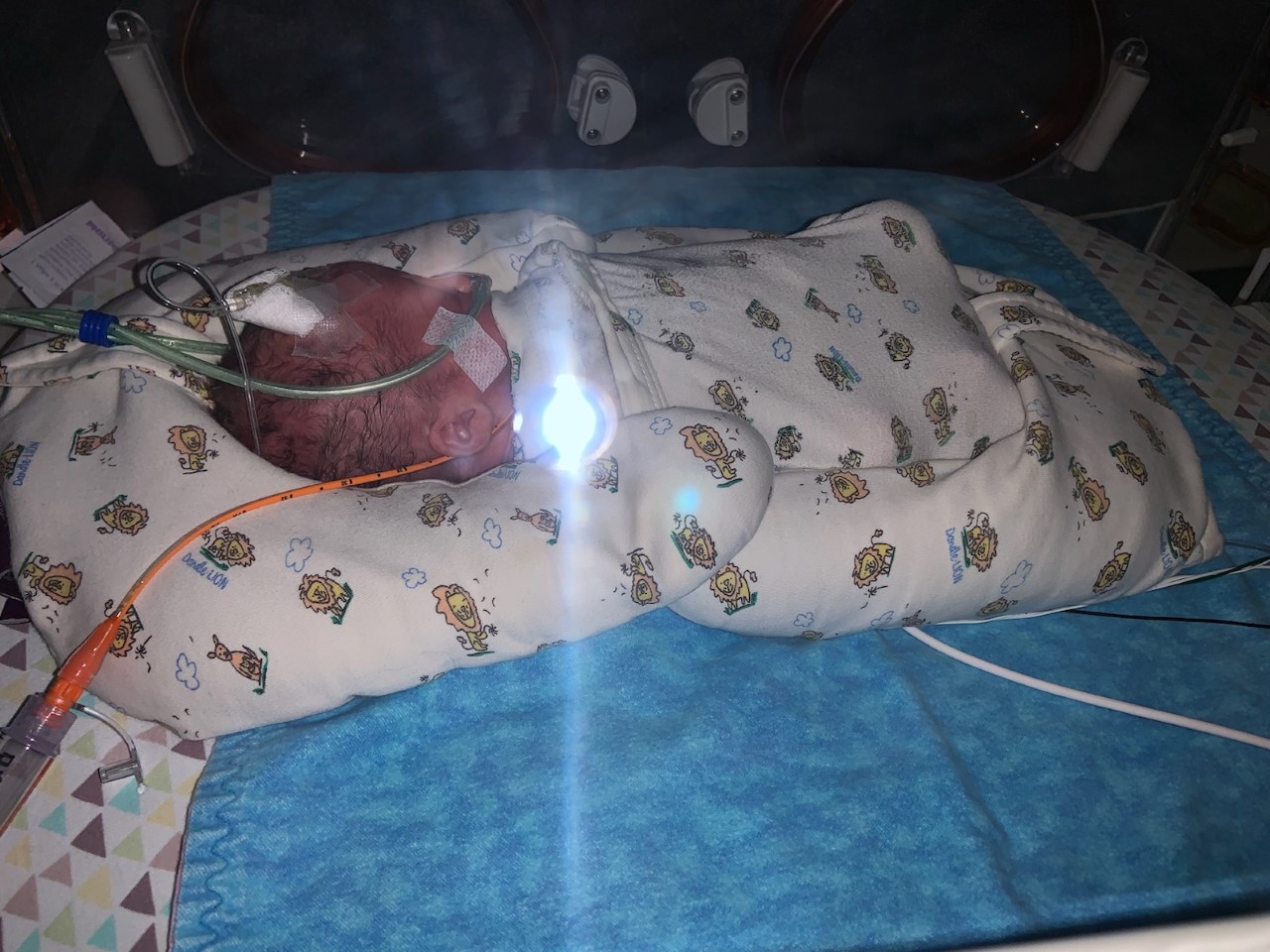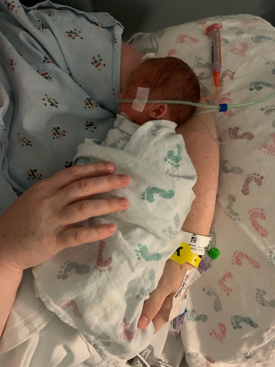 He was born at 32 1/2 weeks – 3 pounds, 6 ounces and 16 inches long.