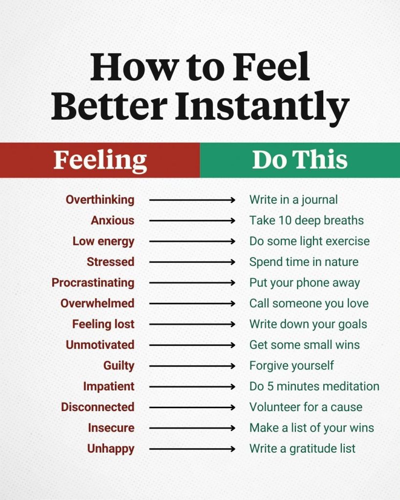 On the Morning Thing Friday, Marcy gave some advice for ways to feel better instantly including: