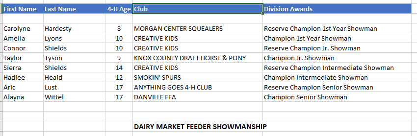 - The Reserve Champion Dairy Market Feeder was shown by Logan Whitney of Danville. He is part of the Creative Kids 4H Club.