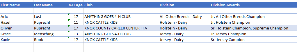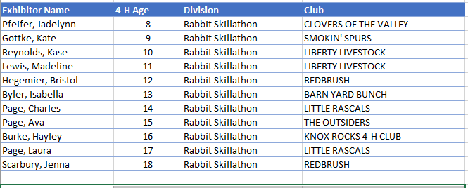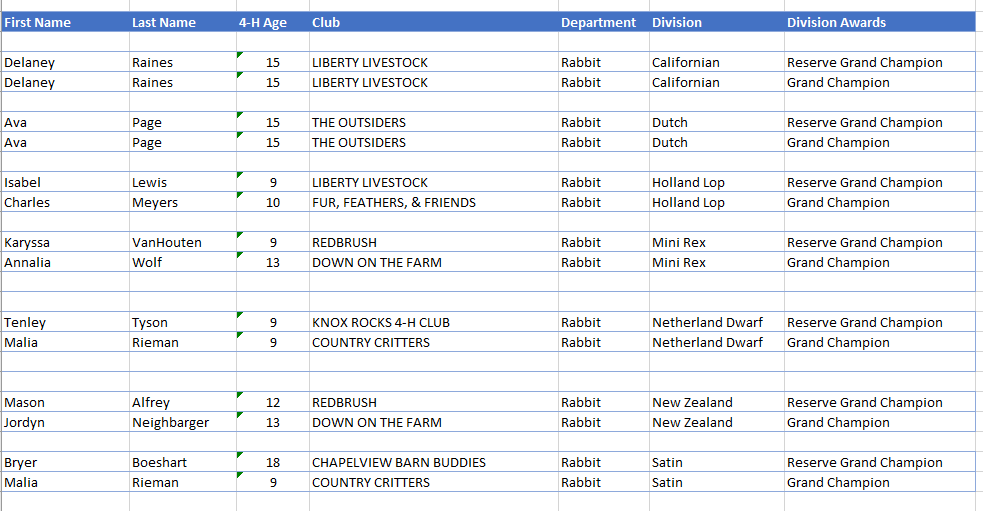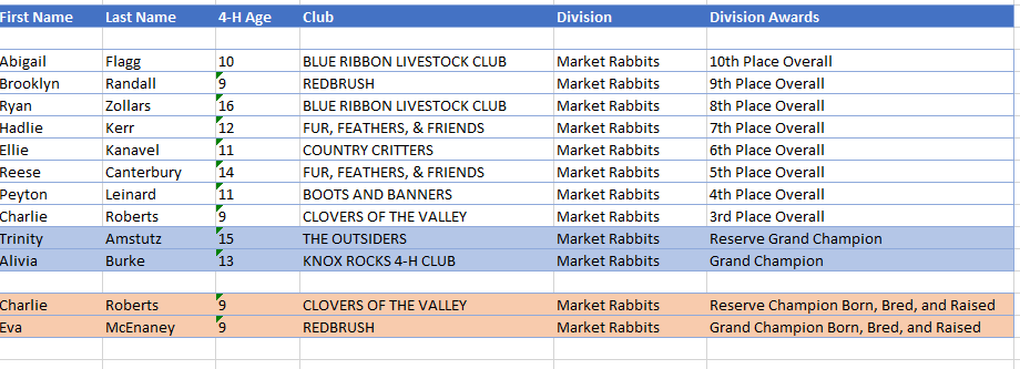 - The Grand Champion Rabbits (Market Fryers) were shown by Alivia Burke of Mount Vernon with the Knox Rocks 4H Club.