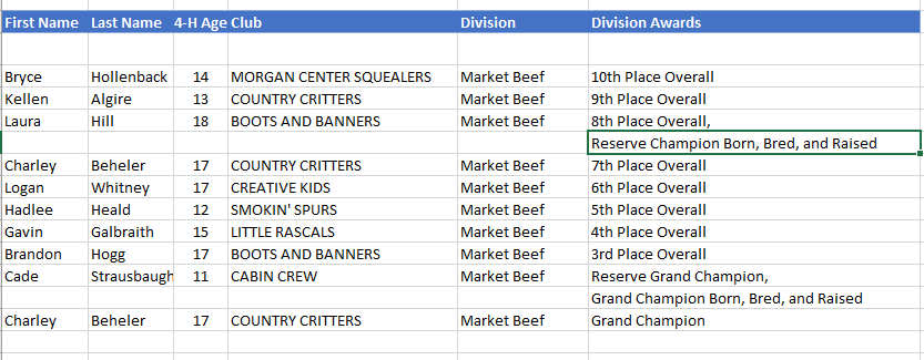 - The Grand Champion Market Beef Steer was shown by Charley Beheler of Fredericktown. She is part of the Country Critters 4H Club. Charley was also Senior Showman and Master Showman.