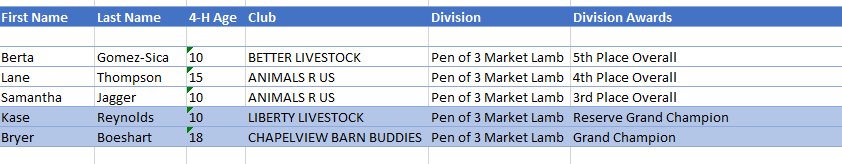 - The Reserve Champion Pen was shown by Kase Reynolds from Mount Vernon with Liberty Livestock 4H Club. Kase was also the 10-year-old Skillathon Winner.