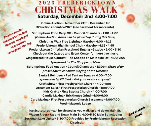 For the latest updates on The Fredericktown Christmas Walk, go to their Facebook page.