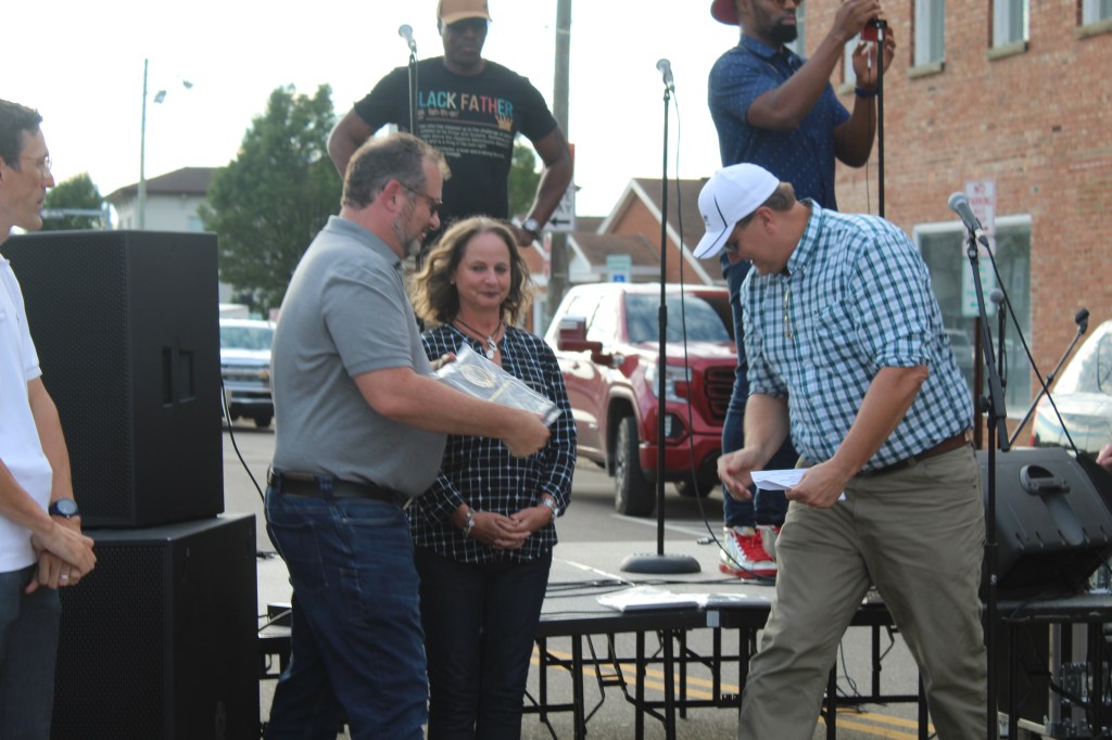 At August First Friday, Mount Vernon Mayor Matt Starr announced the Volunteers of the Year: Janis Stone and Kevin Mishey.