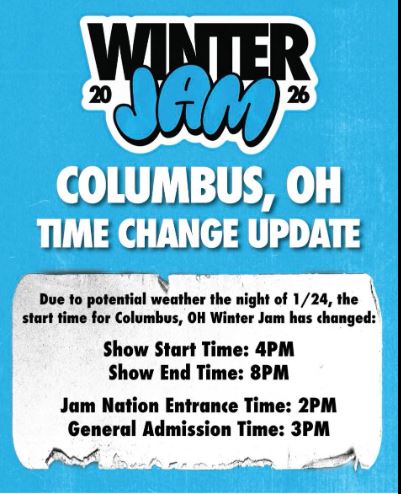 A special note – the WinterJam times for the Columbus concert on Saturday 1/24 have been changed.
